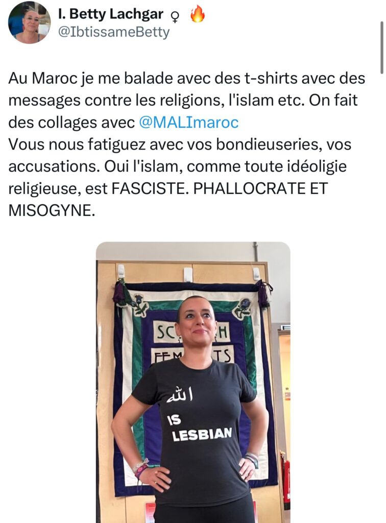 أثارت صورة ابتسام لشكر مؤسسة حركة “مالي” ظهرت فيها مرتدية قميصًا يحمل عبارة اعتبرها كثيرون مسيئة للذات الإلهية وتطاولا على معتقداتهم، موجة واسعة من الجدل على منصات التواصل الاجتماعي، وأعادت إلى الواجهة النقاش حول حدود حرية التعبير في المغرب.